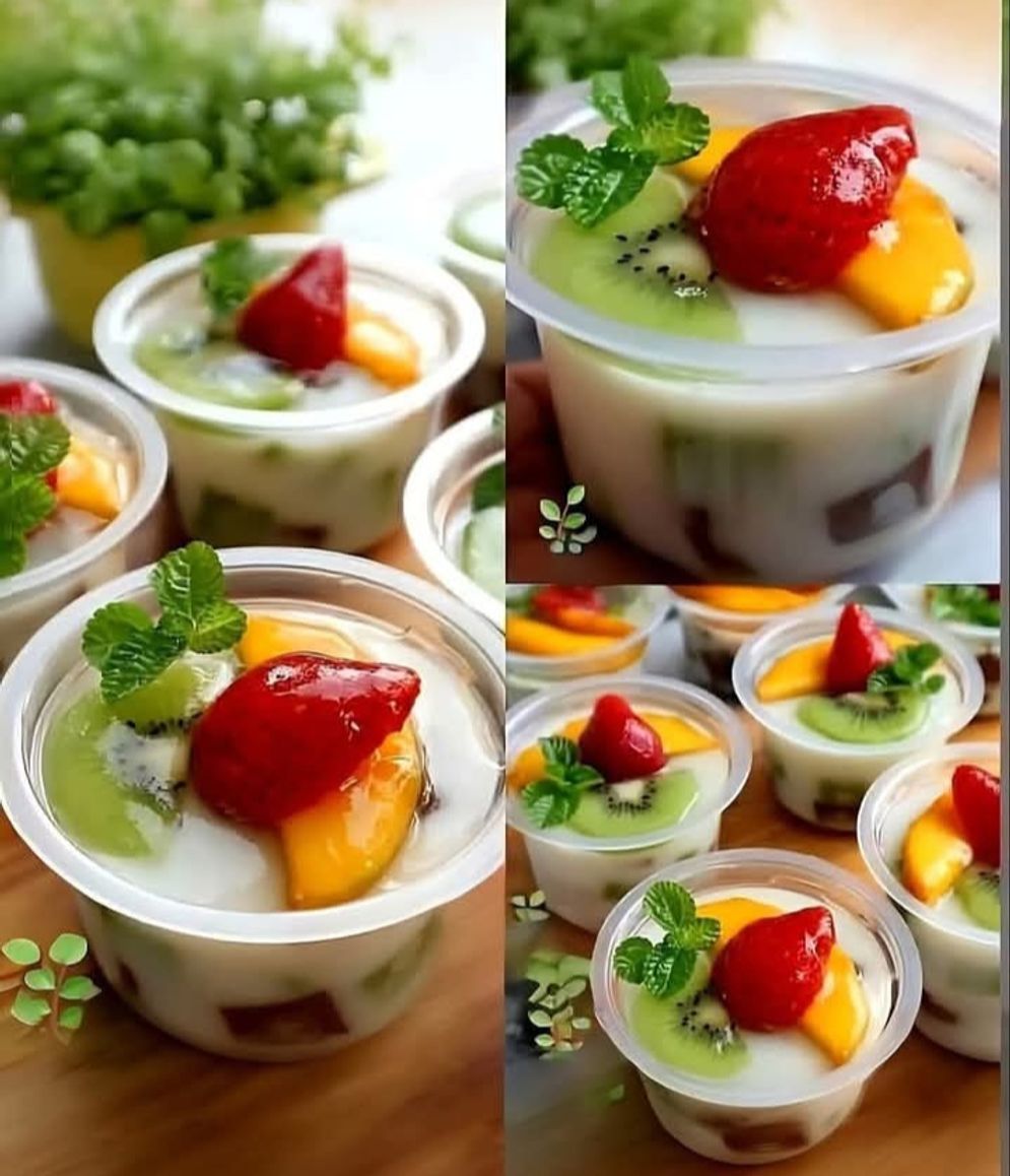 - Buah-buahan strawberry, kiwi, mangga, potong sesuai selera