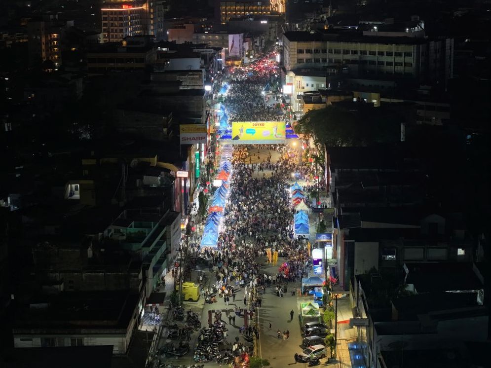 SABTU (11/4/2026) malam itu, lampu-lampu di sepanjang Jalan Kolonel Atmo tampak berbeda. Bukan sekadar menerangi jalan, tapi seolah mengundang warga keluar rumah. Musik mengalun, tawa bersahutan, dan deretan lapak Usaha Mikro Kecil dan Menengah (UMKM) hidup di antara langkah-langkah santai masyarakat. Malam di Palembang terasa lebih hangat.