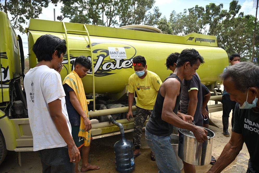 Selain itu, tim relawan juga membagikan masker dan menyalurkan air bersih kepada warga guna menjaga kesehatan masyarakat di tengah kondisi pascabanjir.