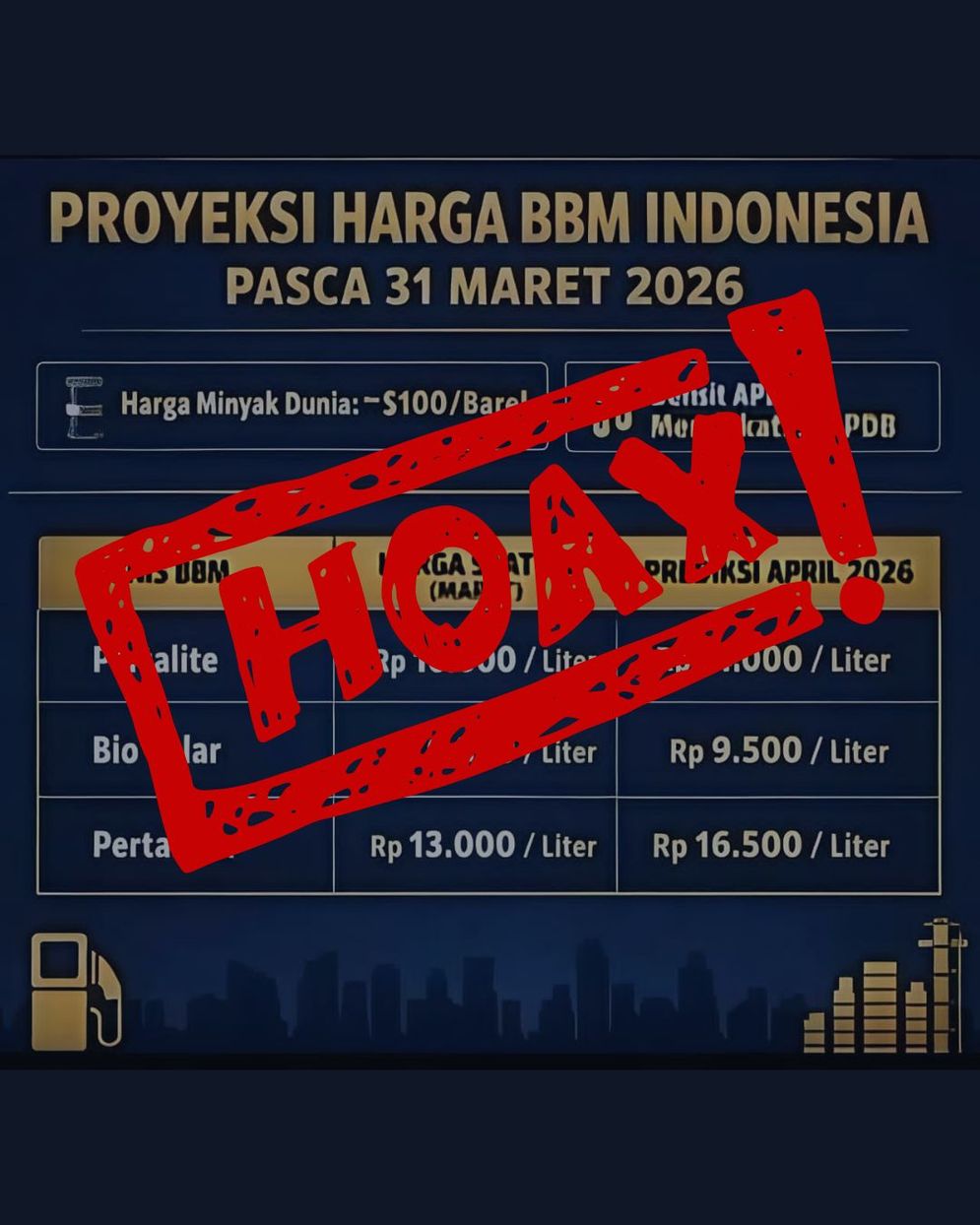 "PROYEKSI HARGA BBM INDONESIA PASCA MARET 2026 - Harga Minyak Dunia:s100/Barel - Defisit APBN: Mendekati 3% PDB
