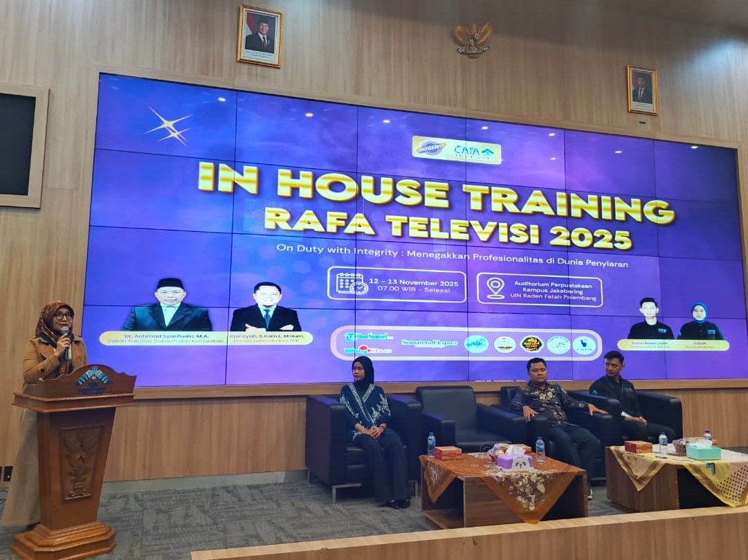 PALEMBANG, WongKito.co – Rafa Televisi Universitas Islam Negeri (UIN) Raden Fatah Palembang kembali menggelar kegiatan tahunan In House Training (IHT) 2025 dengan tema “On Duty with Integrity: Menegakkan Profesionalitas di Dunia Penyiaran.” Acara ini berlangsung selama dua hari dan diikuti oleh 35 kru generasi baru Rafa Televisi sebagai bagian dari proses pembekalan dan pelatihan dasar sebelum mereka terjun ke dunia penyiaran kampus.