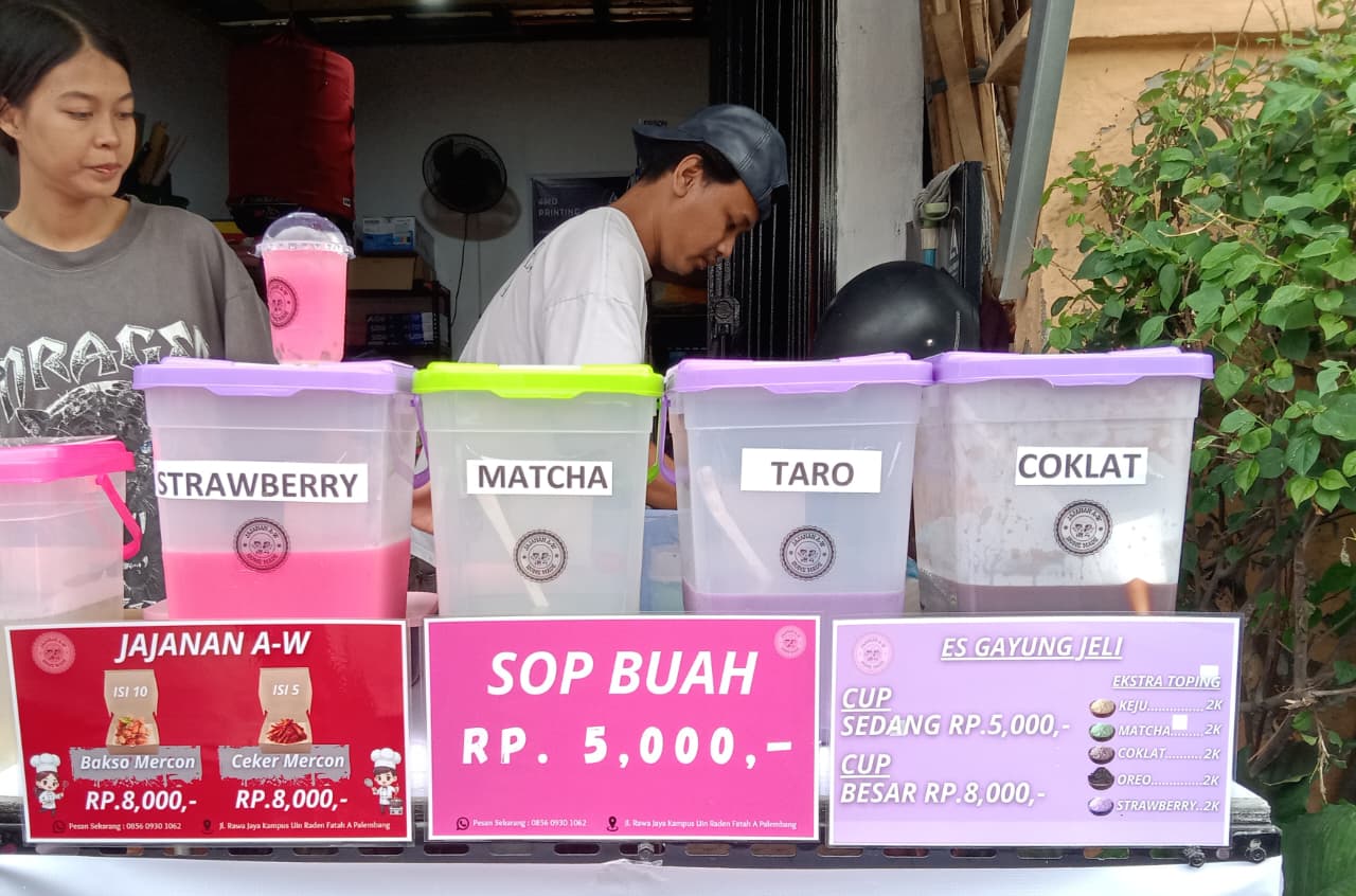Di sepanjang Jalan Rawa Jaya, tepat di belakang Universitas Islam Negeri (UIN) Raden Fatah Palembang, sejak memasuki Ramadan tampak deretan tenda warna-warni berdiri. Asap tipis mengepul dari penggorengan, menyatu dengan aroma manis kolak pisang dan legitnya kue pancong yang baru diangkat dari cetakan.