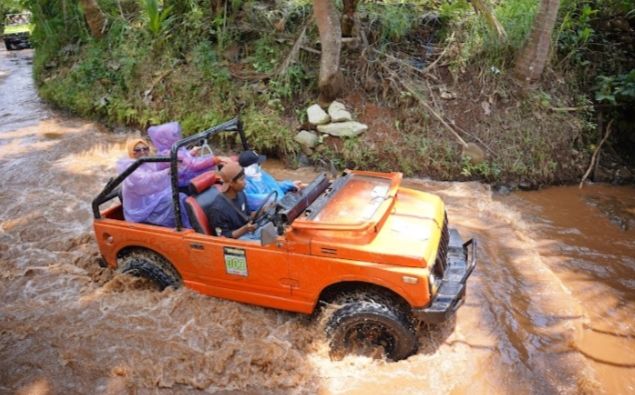 Selanjutnya para pengunjung juga dibawa menyusuri sungai yang perjalanannya memerlukan adrenalin yang cukup karena perjalanan berlumpur dan menyusuri sungai.