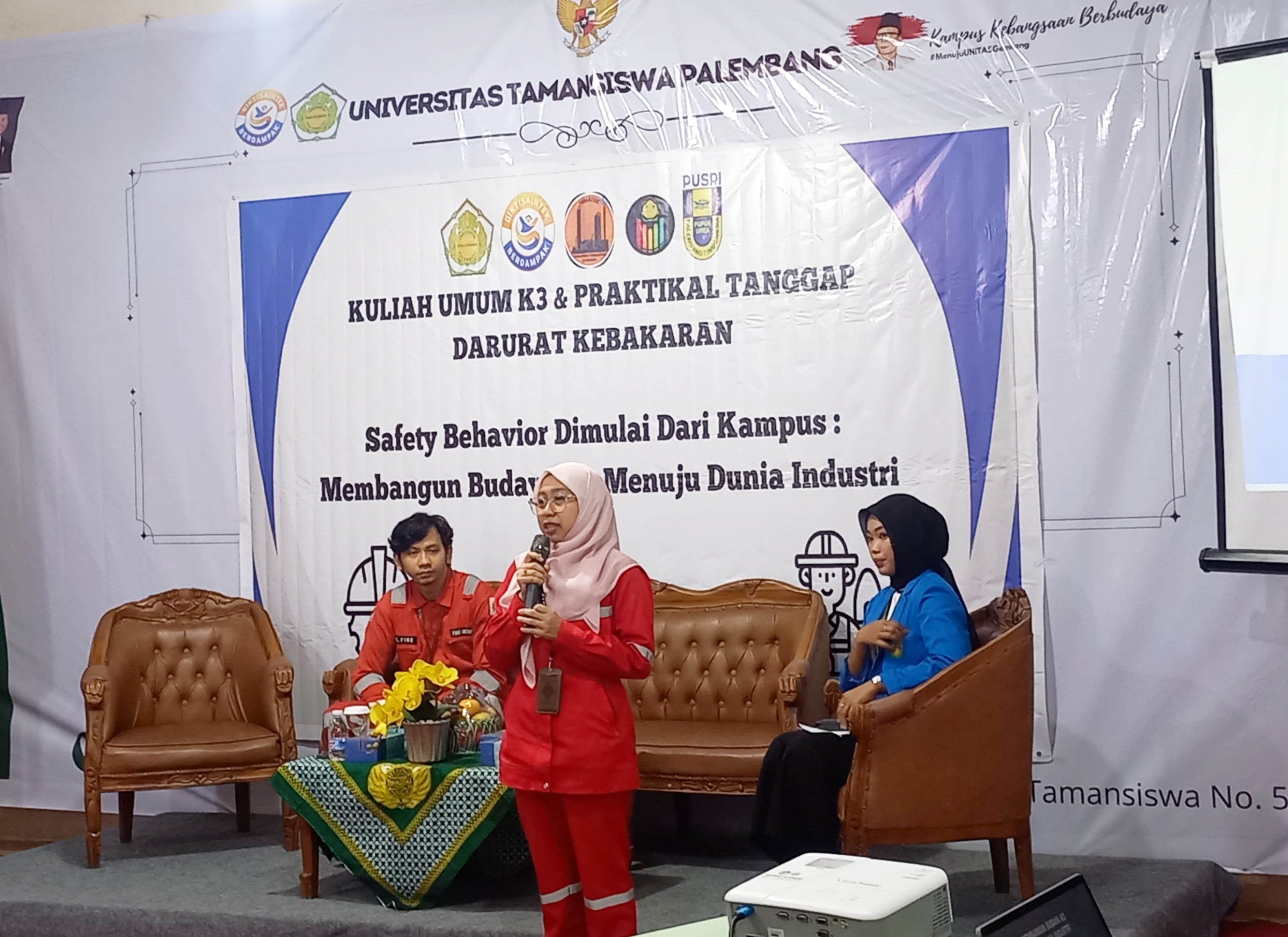 Kegiatan ini menghadirkan dua narasumber kompeten di bidang Keselamatan dan Kesehatan Kerja, yakni Dian Kartika Damayanti dari PT Pupuk Sriwijaya (PUSRI) Bagian AVP Perizinan dan Pembinaan K3, serta Muhammad Gazi, praktisi K3 yang juga merupakan alumni Universitas Tamansiswa Palembang.